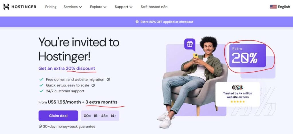 The last step is to buy and claim the Hostinger black Friday deal. Kick back and enjoy, because you’ve landed the best hosting deal of the year!